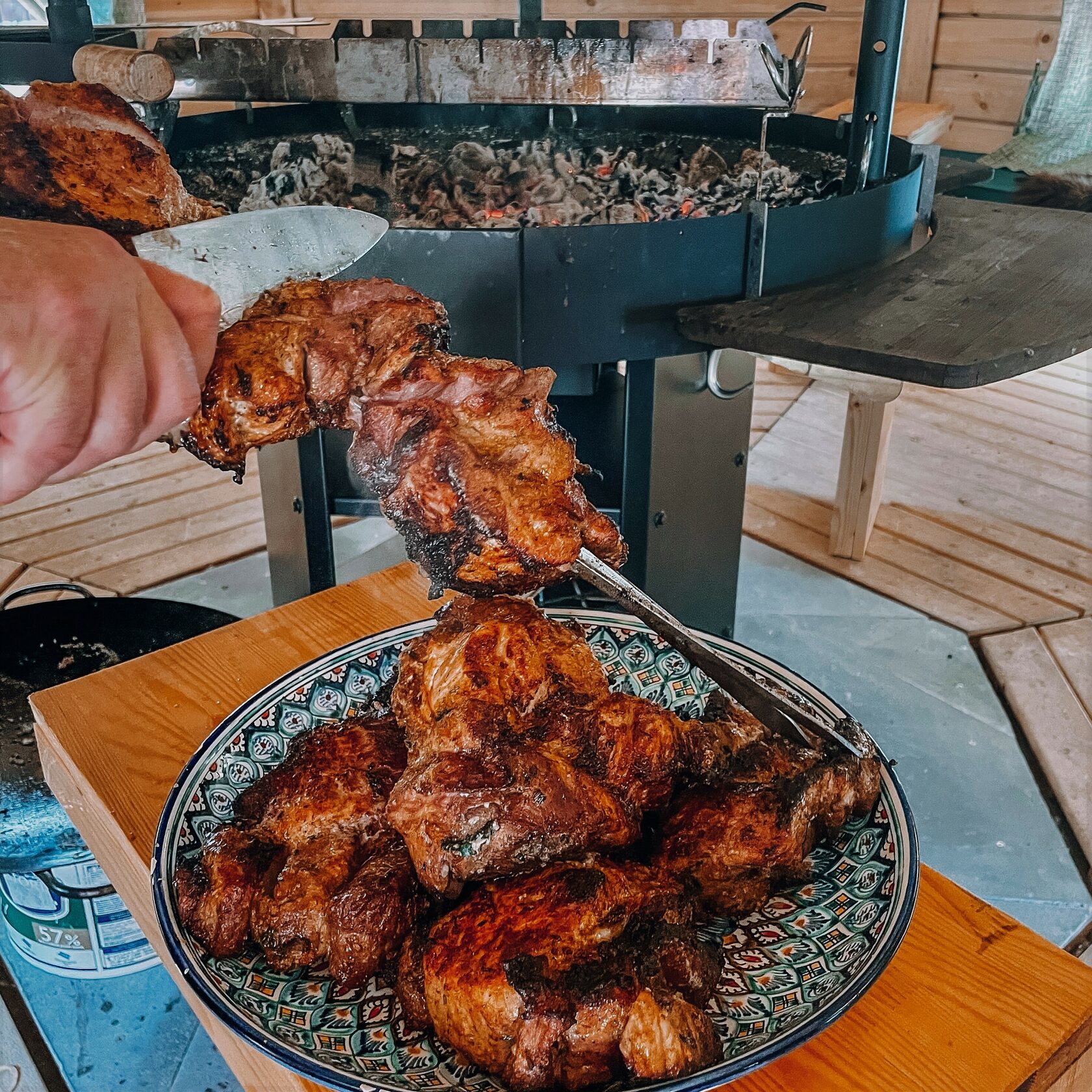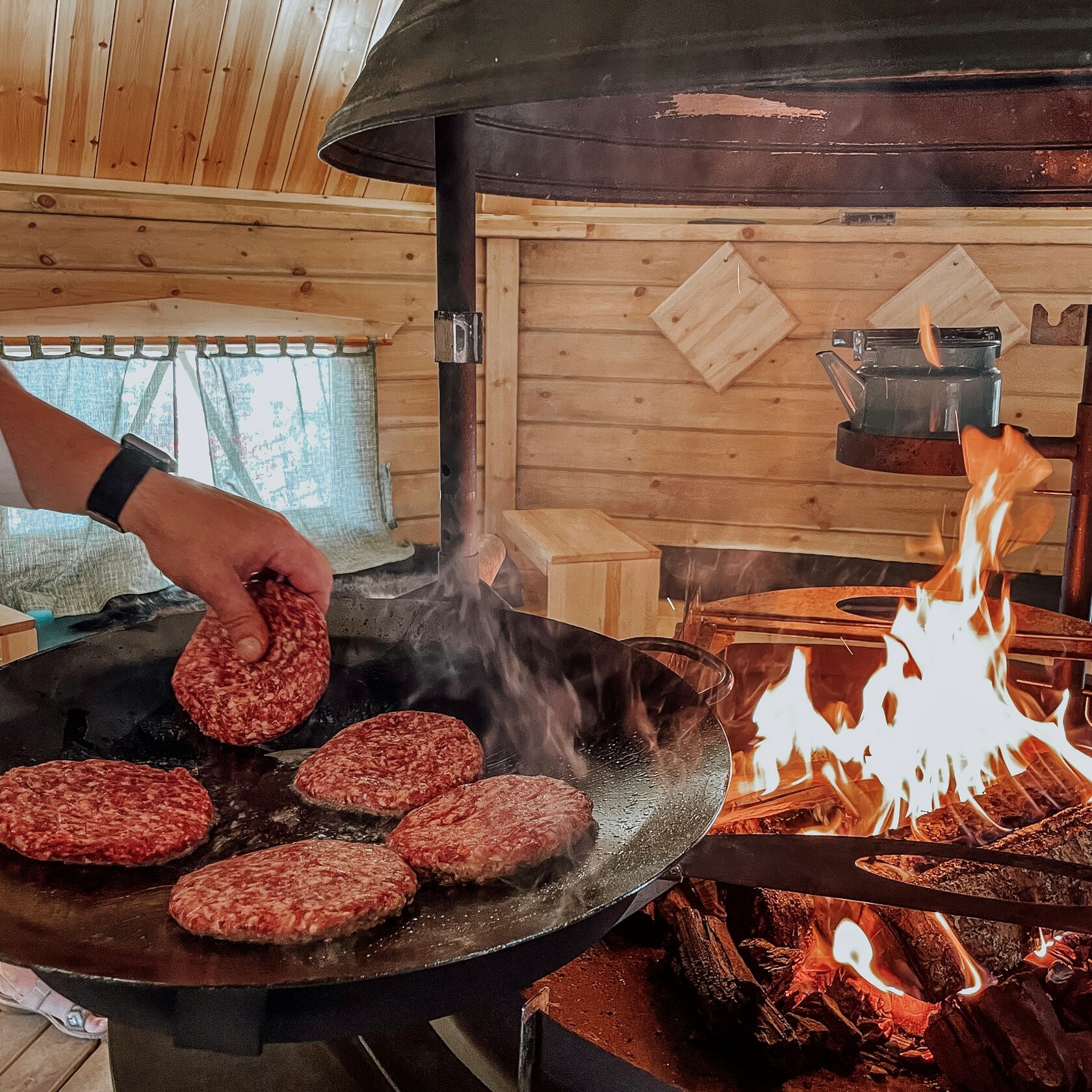 Большой дом с панорамными окнами, вместительной верандой и огороженный дворик. Можно не только комфортно посидеть с хорошей компанией за банкетным столом, но и напариться в русской бане.